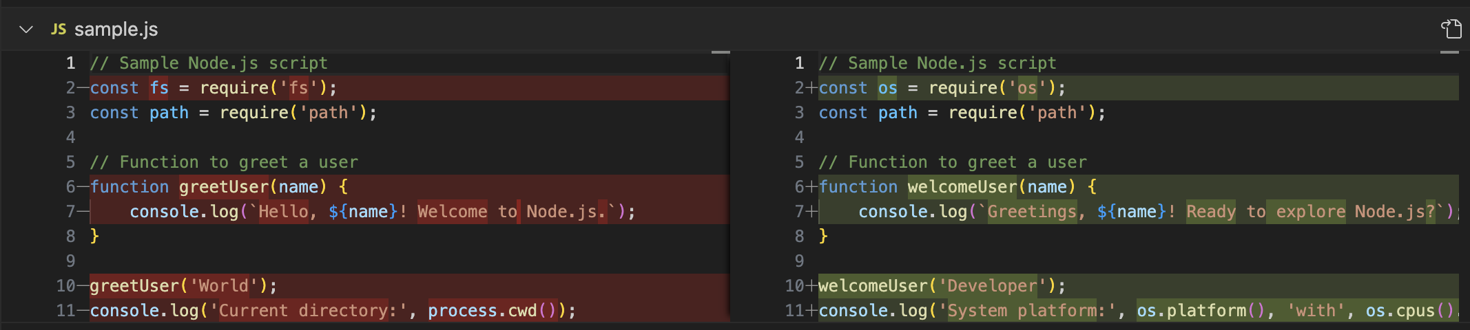 - Removed lines are highlighted in red